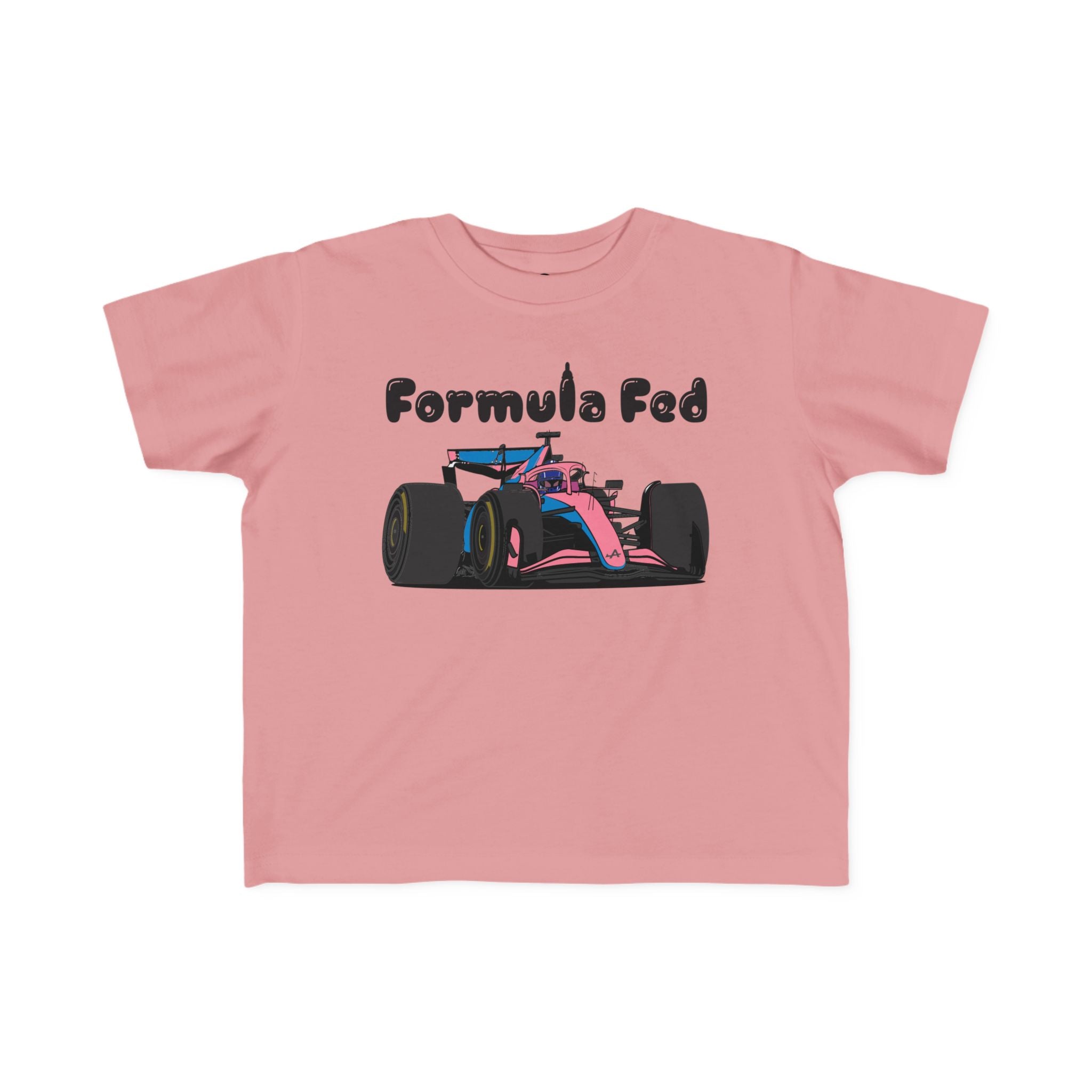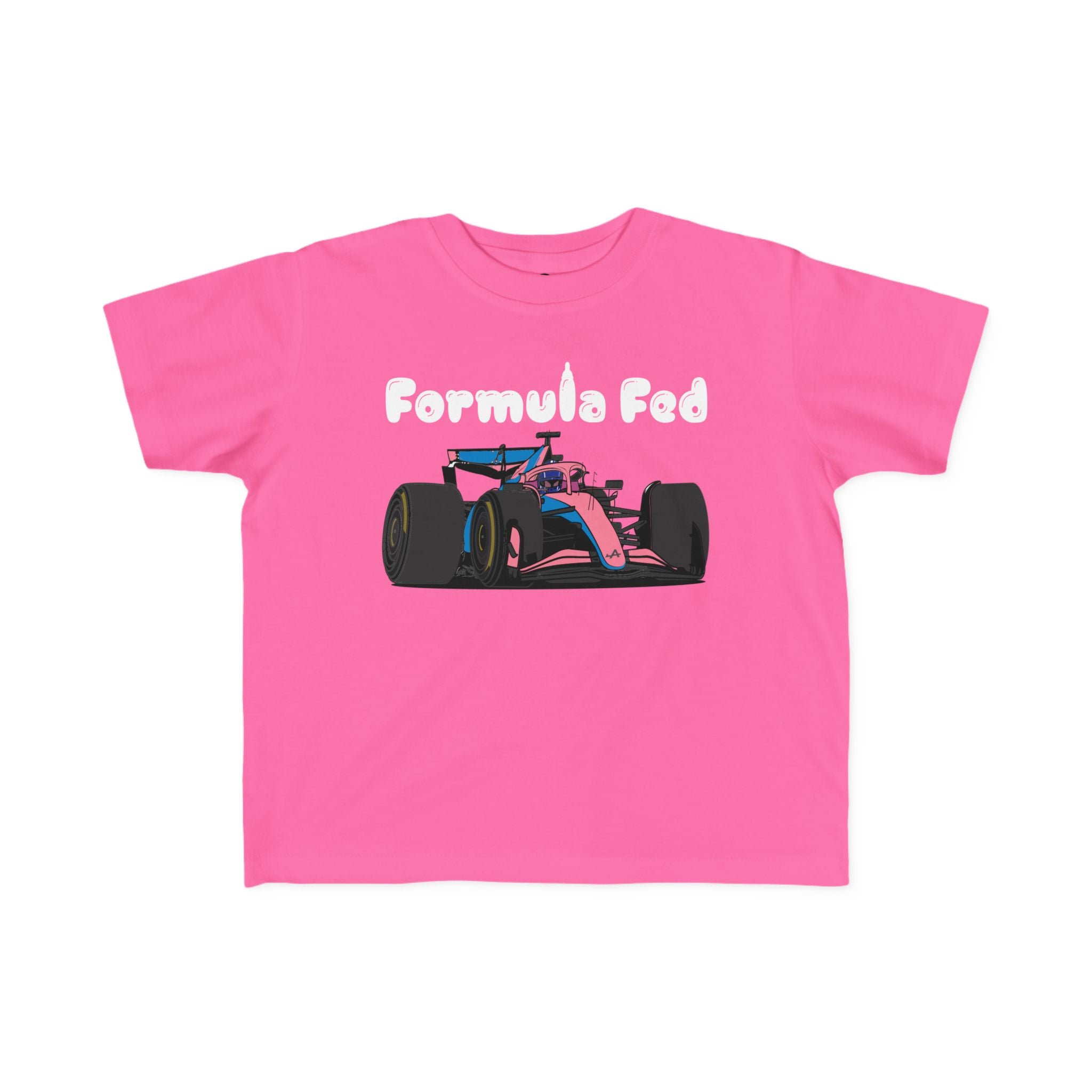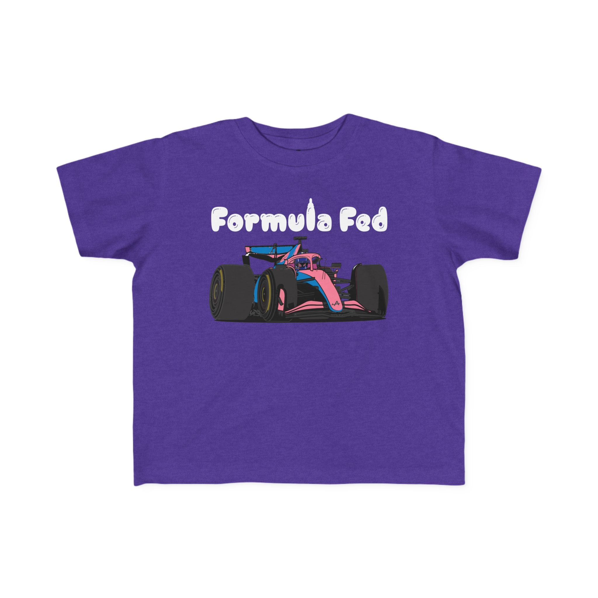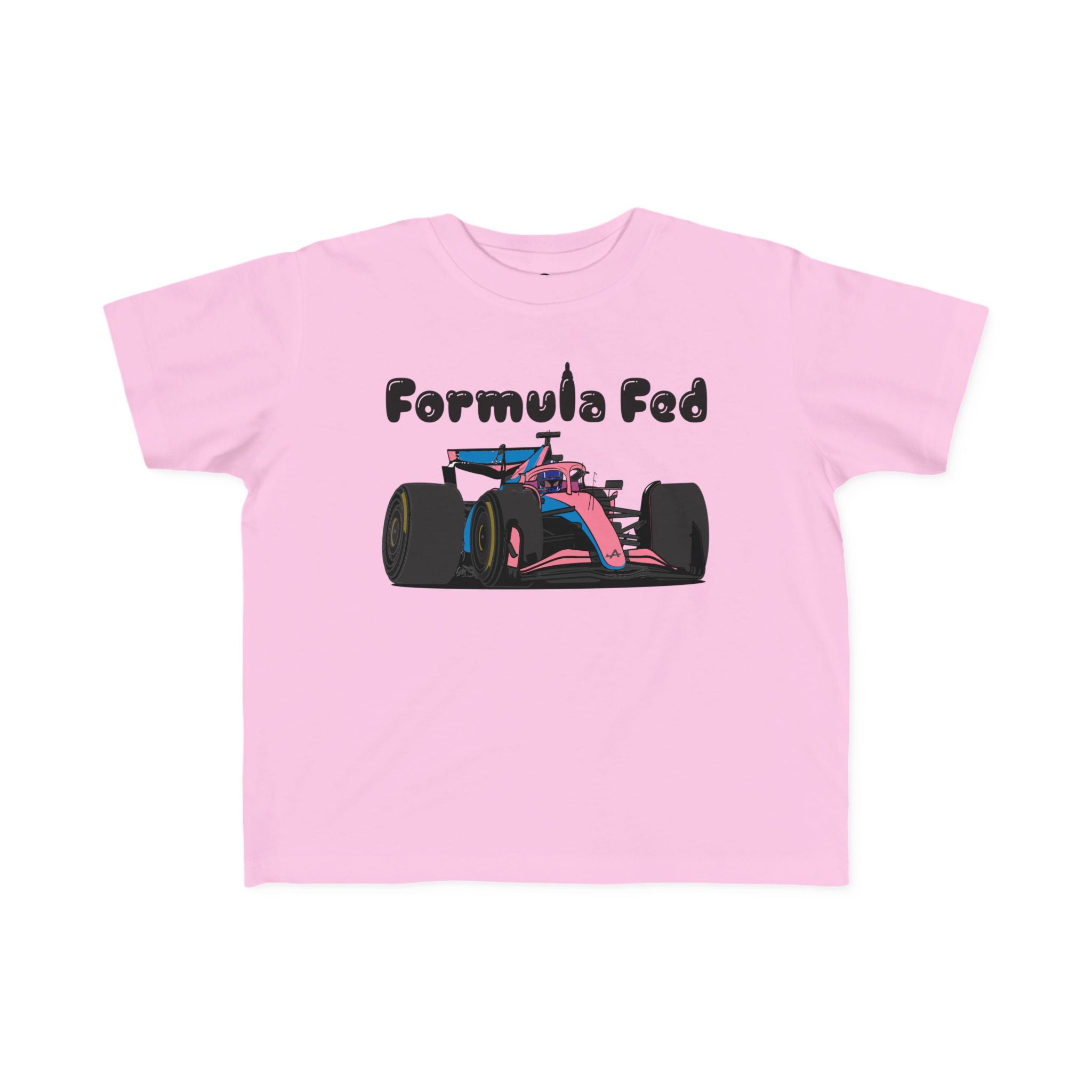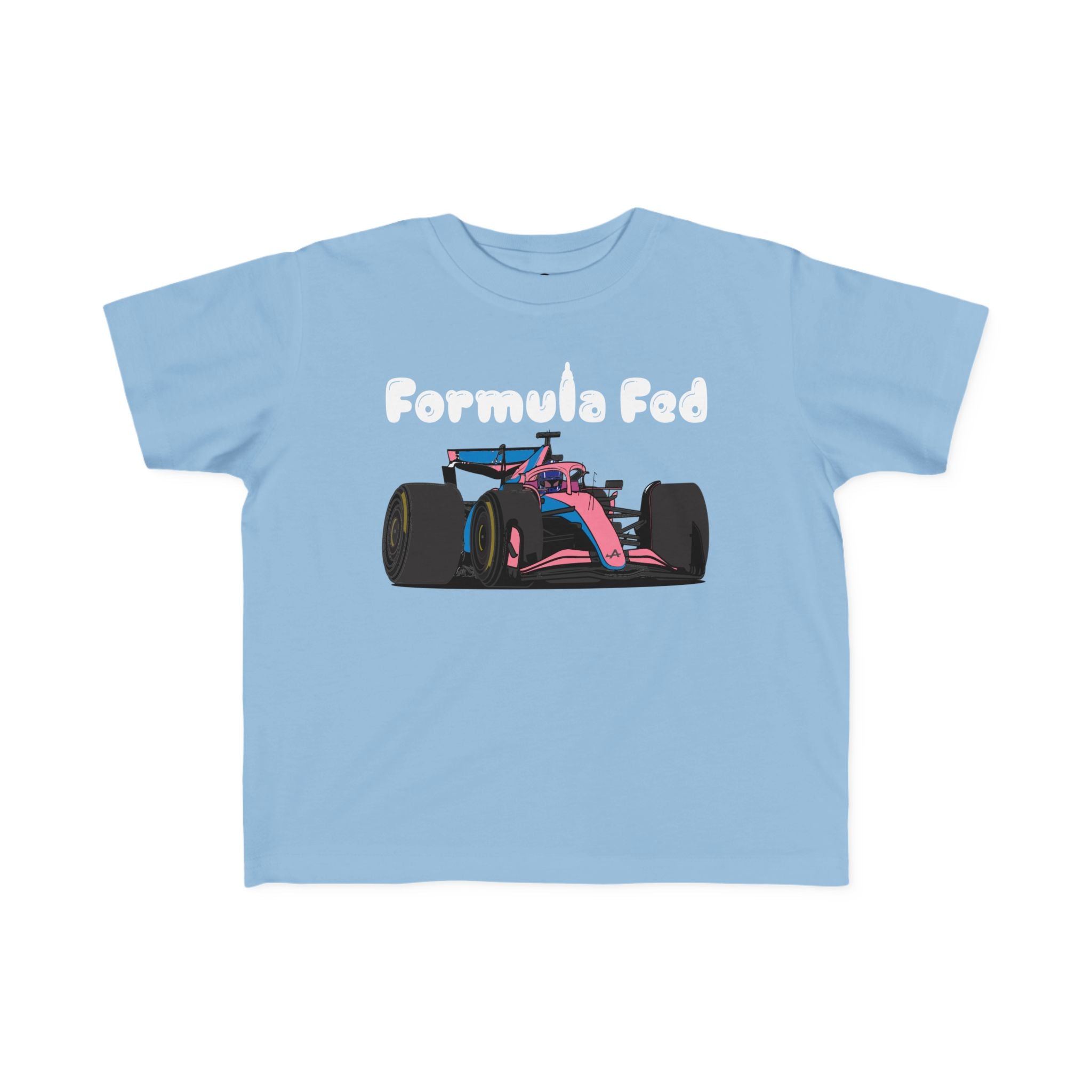 Start ‘em young with our Formula Fed toddler tee! Featuring a playful cartoon F1 car and a clever nod to race-ready nutrition, this shirt is perfect for little speedsters in training. Soft, comfy, and built for the fast life—just like your future racer! 🏁👶