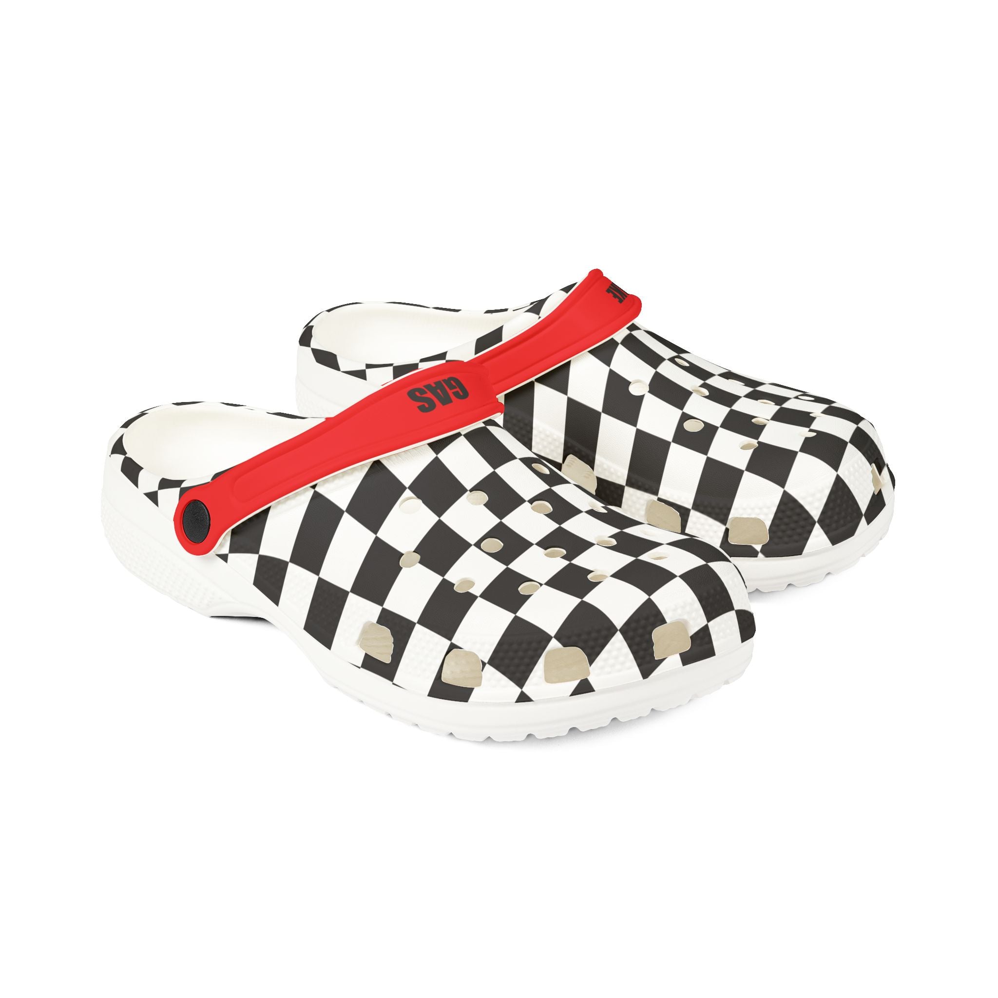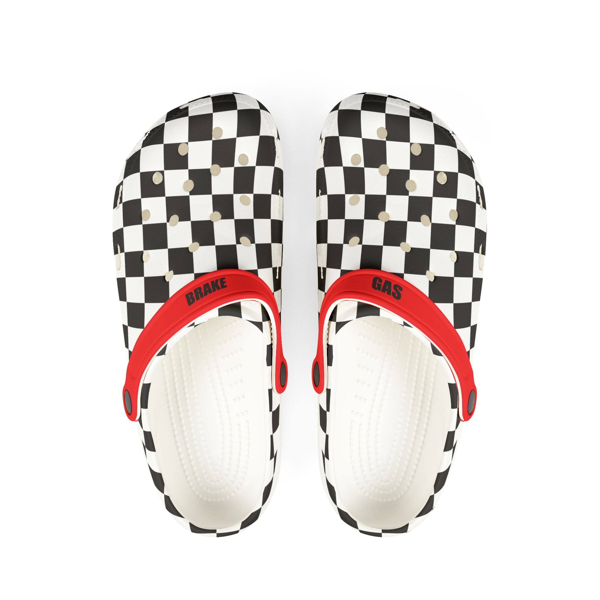For those who live life in the fast lane! Our Racing Clogs bring a bold motorsports-inspired look with a classic checkered flag design, perfect for trackside days, car meets, or just kicking back in comfort. Featuring “Brake” on the left strap and “Gas” on the right, these clogs are a fun reminder that balance is everything—on the track and in life!