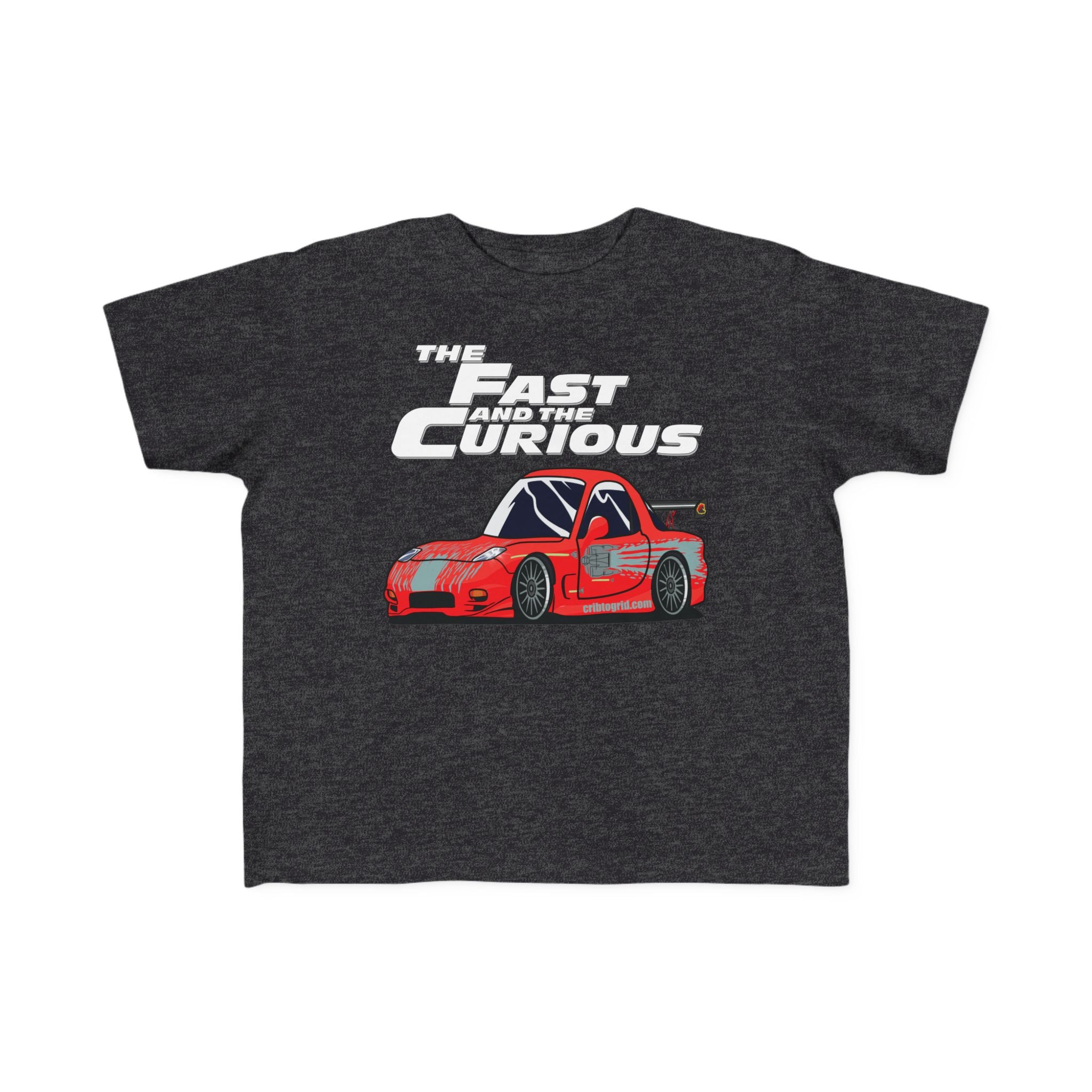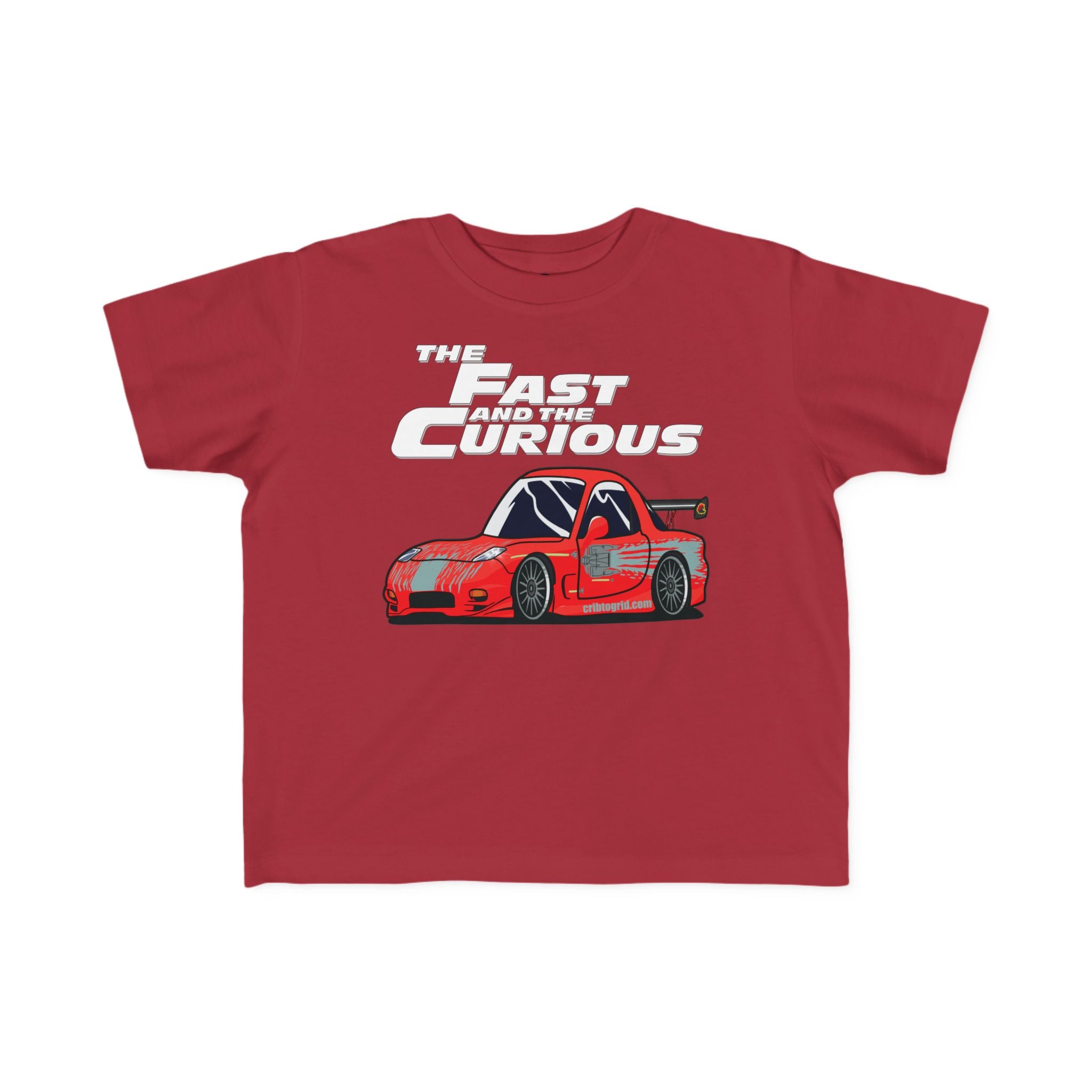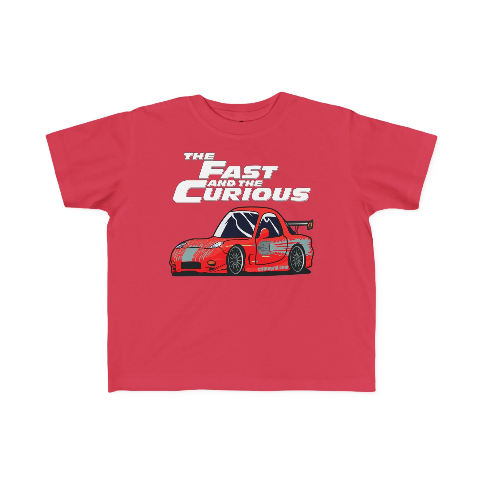 For the little one who’s always on the move! Our "The Fast and the Curious" toddler t-shirt features a fun cartoon version of Dom’s iconic red RX-7, paired with a playful twist on the legendary movie title. Perfect for young car lovers with a need for speed and an endless curiosity for the world around them.